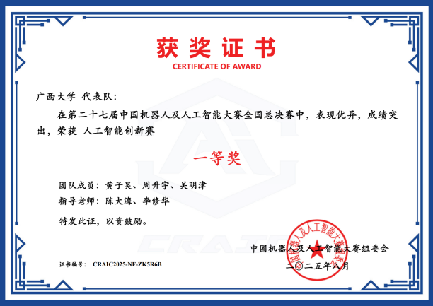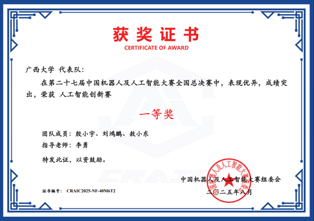 据悉,本届大赛自2025年3月启动以来,吸引了全国各地900余所高校参赛,参赛队伍达3万余个,参赛学生达9万余人。我院一直以来秉持着 “以赛促学、以赛促教、以赛促研” 的理念,高度重视学科竞赛工作,将其作为培养学生创新精神、实践能力和团队协作能力的重要途径。未来,学院将继续加大投入,不断完善学科竞赛体系,为培养更多具有创新精神和实践能力的高素质人才而努力奋斗,为推动我国机器人及人工智能领域的发展贡献更多力量。
