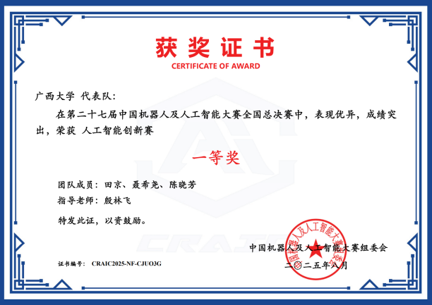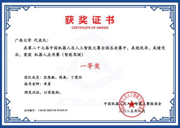 近日,第二十七届中国机器人及人工智能大赛落下帷幕,我院在本届比赛中荣获国家级奖项25项,其中一等奖6项、二等奖8项、三等奖11项;省级奖项53项,包括一等奖16项、二等奖21项、三等奖16项。此次大赛充分展现了学院在机器人及人工智能领域的实力与教学成果,是学院长期以来注重学科建设、创新实践与人才培养的集中体现,也为相关学科的持续发展与高水平人才培养注入了新动能。